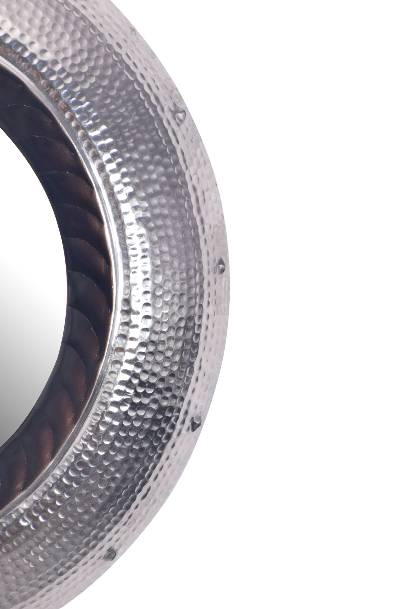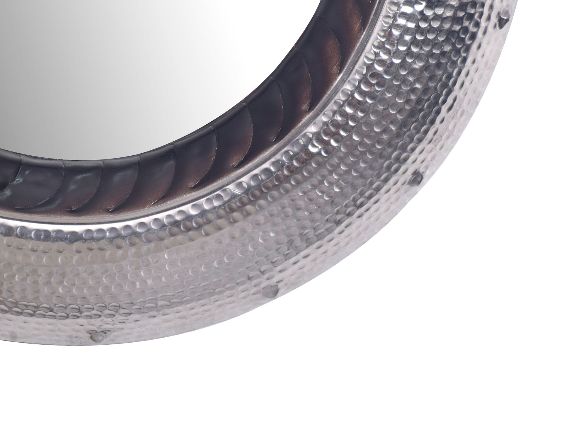 Round Wall Mirror Glass & Silver Aluminum | 74x74 cm | Hammered Frame Design
