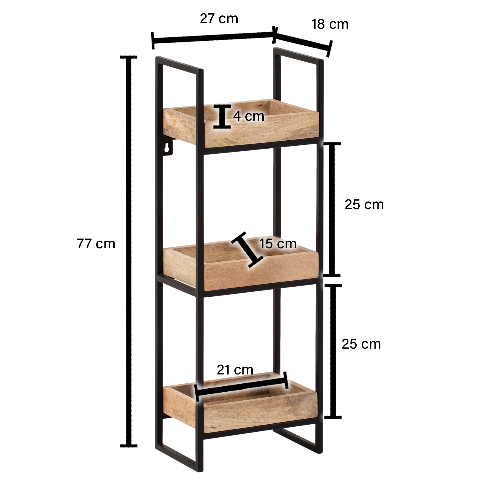 - Shelf dimensions (W x H x D): 21 x 4 x 15 cm