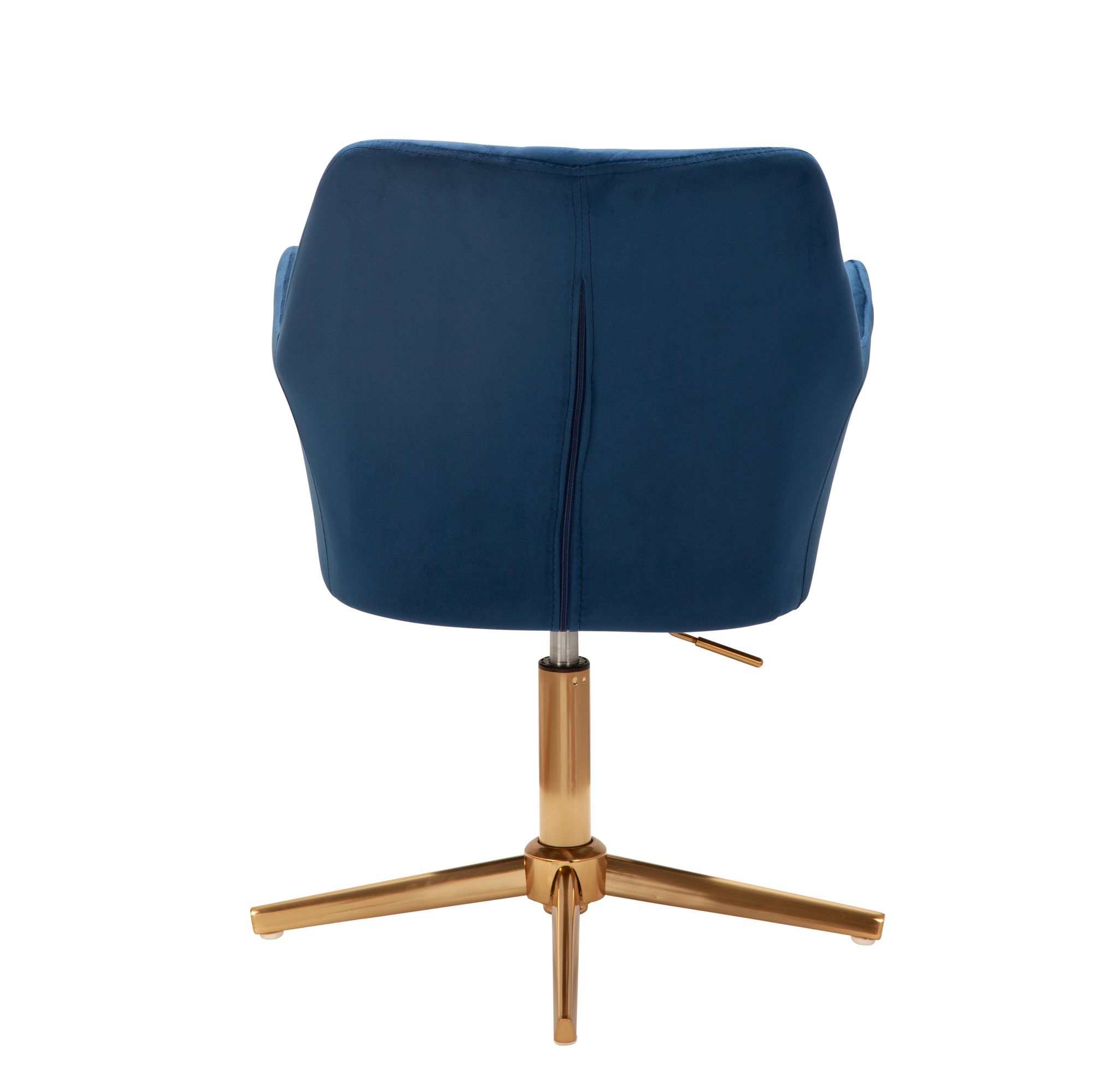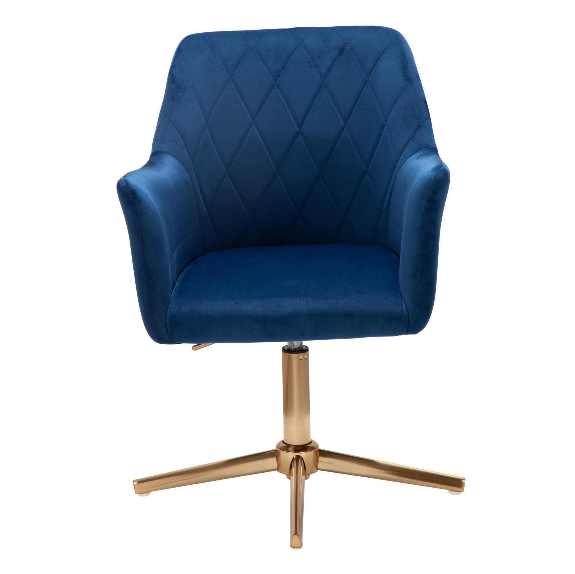 Dark Blue Velvet Office Chair | Gold Metal Frame | Adjustable Height 80-97 cm