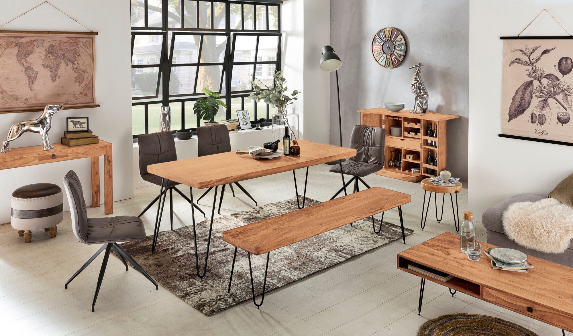 Enjoy the BAGLI solid wood dining bench made from natural Acacia wood, combining natural charm with rustic style to enhance your kitchen or dining area. The sturdy seat is paired with black metal legs for stability and modern appeal.