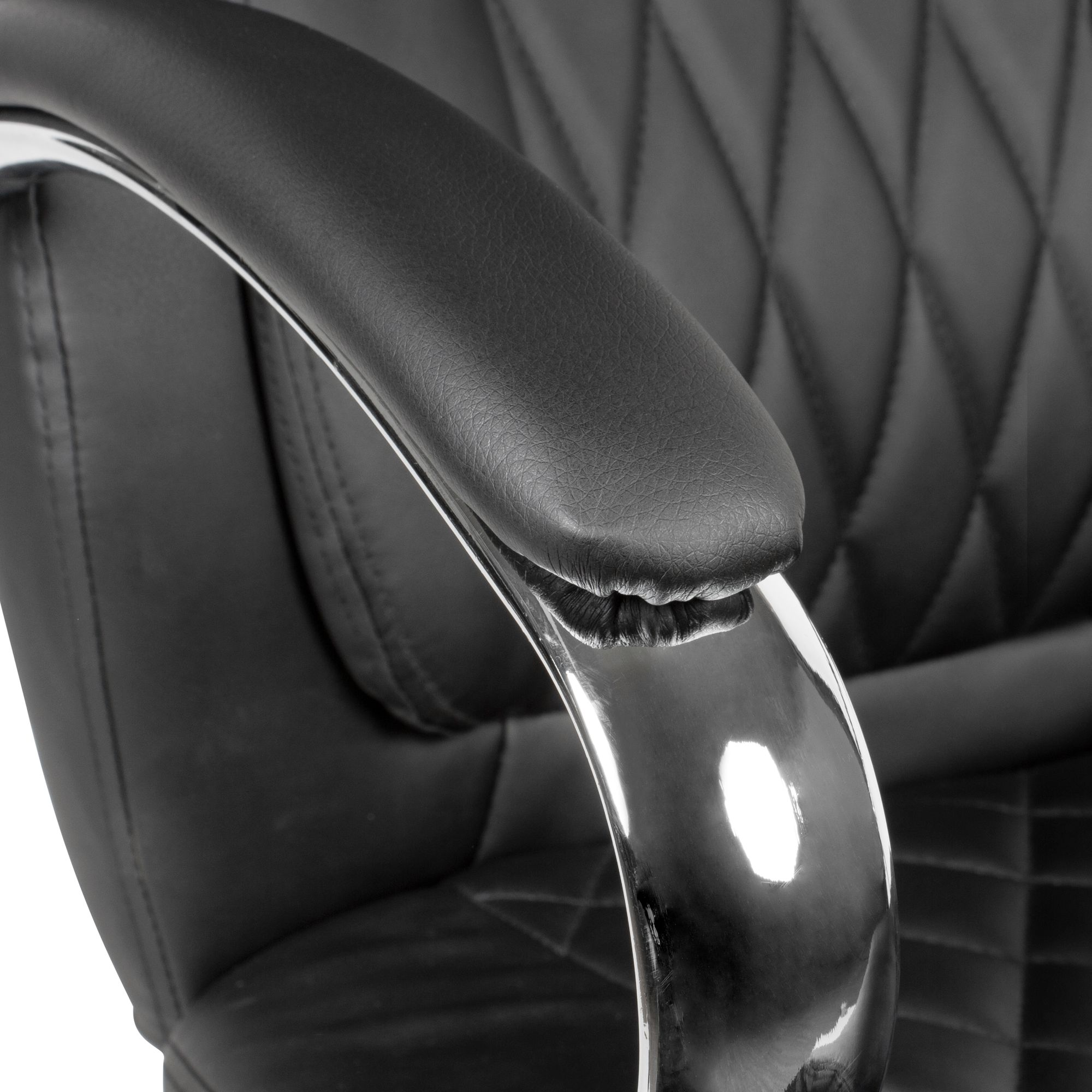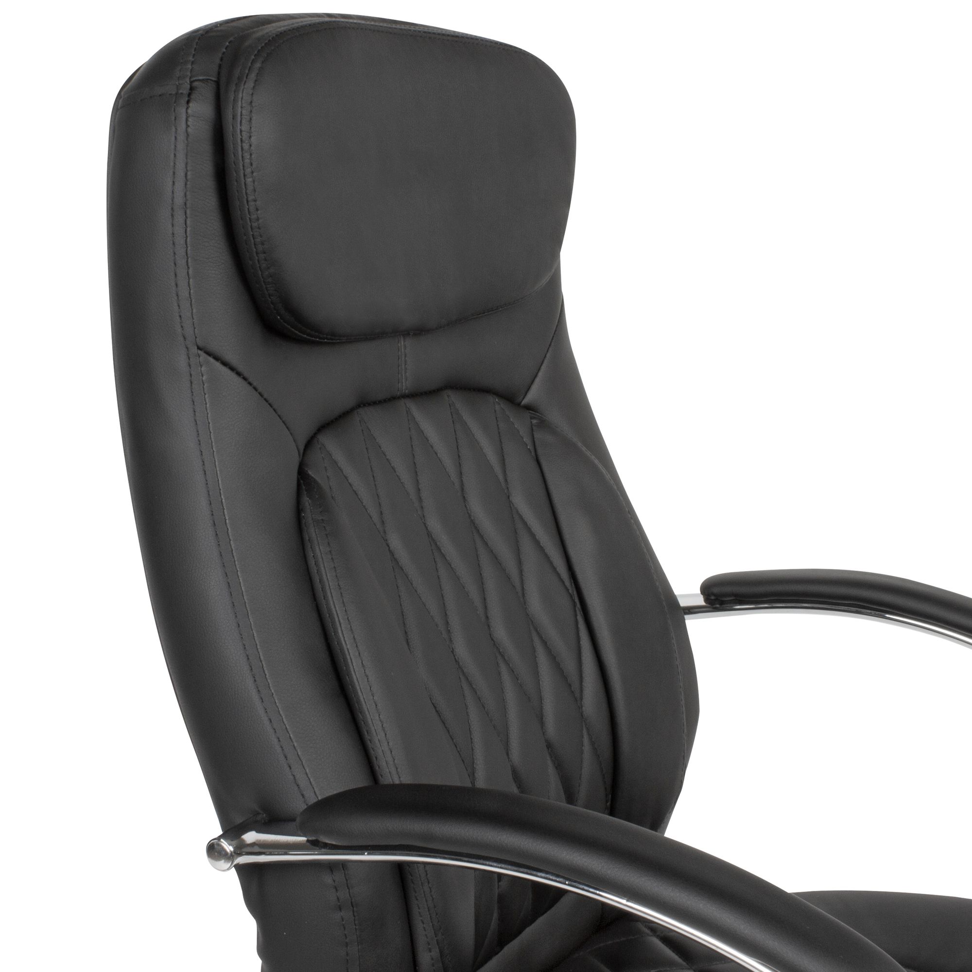 This black faux leather office chair combines elegance and comfort for intensive professional use. Featuring a modern design with quilted diamond pattern on the padded seat and backrest, it ensures optimal comfort. The armrests and wide steel base provide exceptional stability, supporting up to 120 kg.