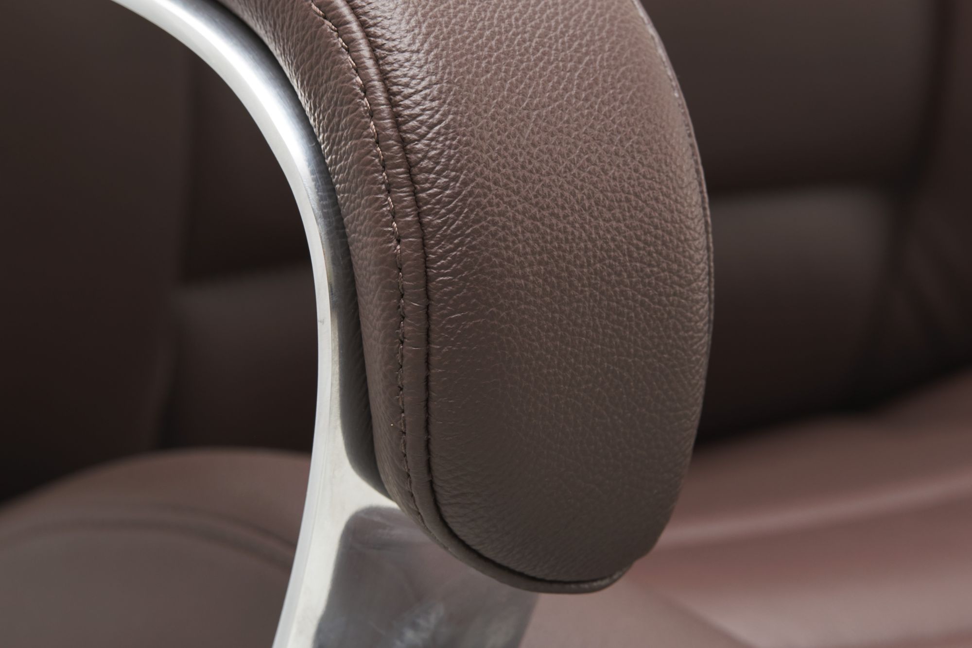 Materials: genuine leather inside, synthetic leather outside and on armrests, polished aluminum.