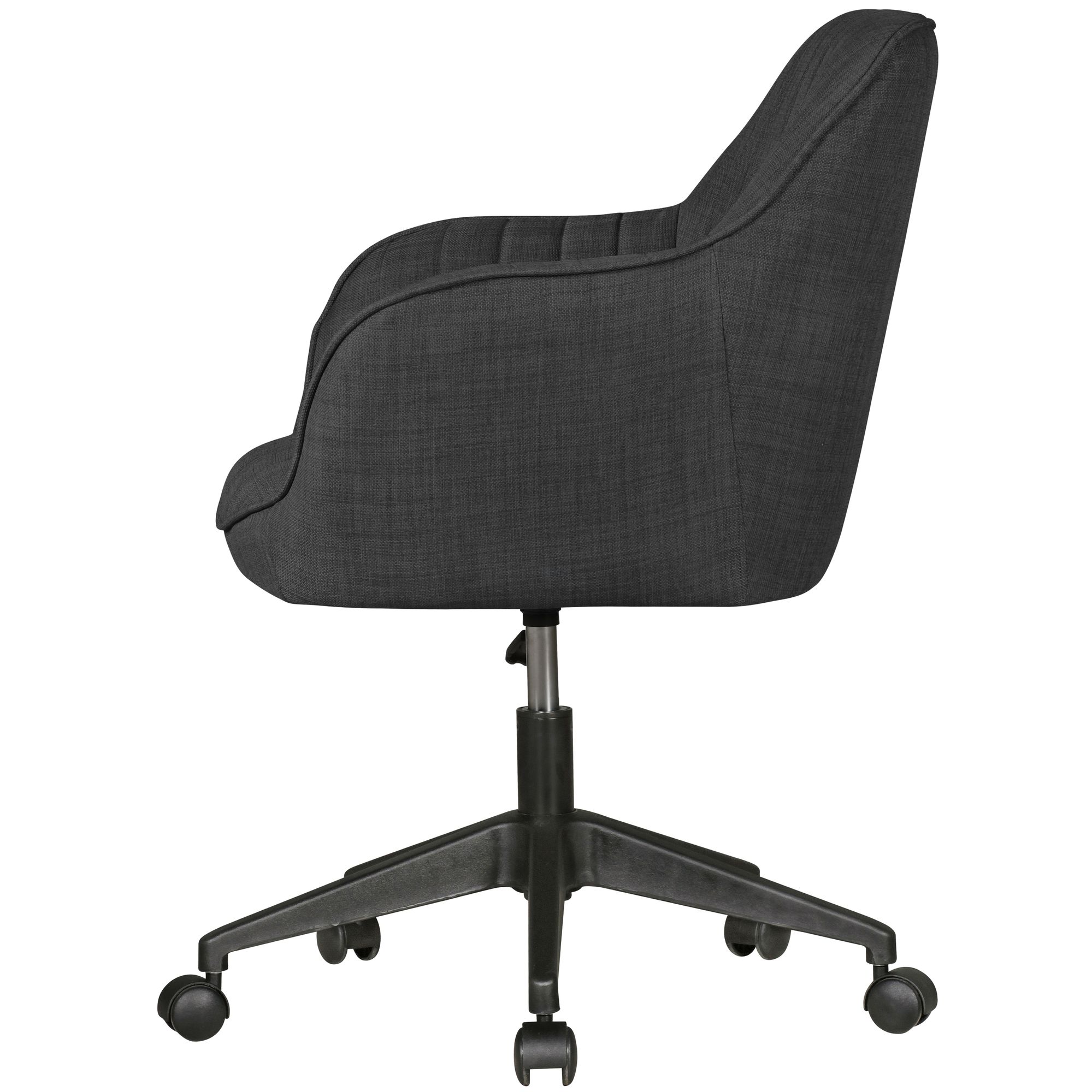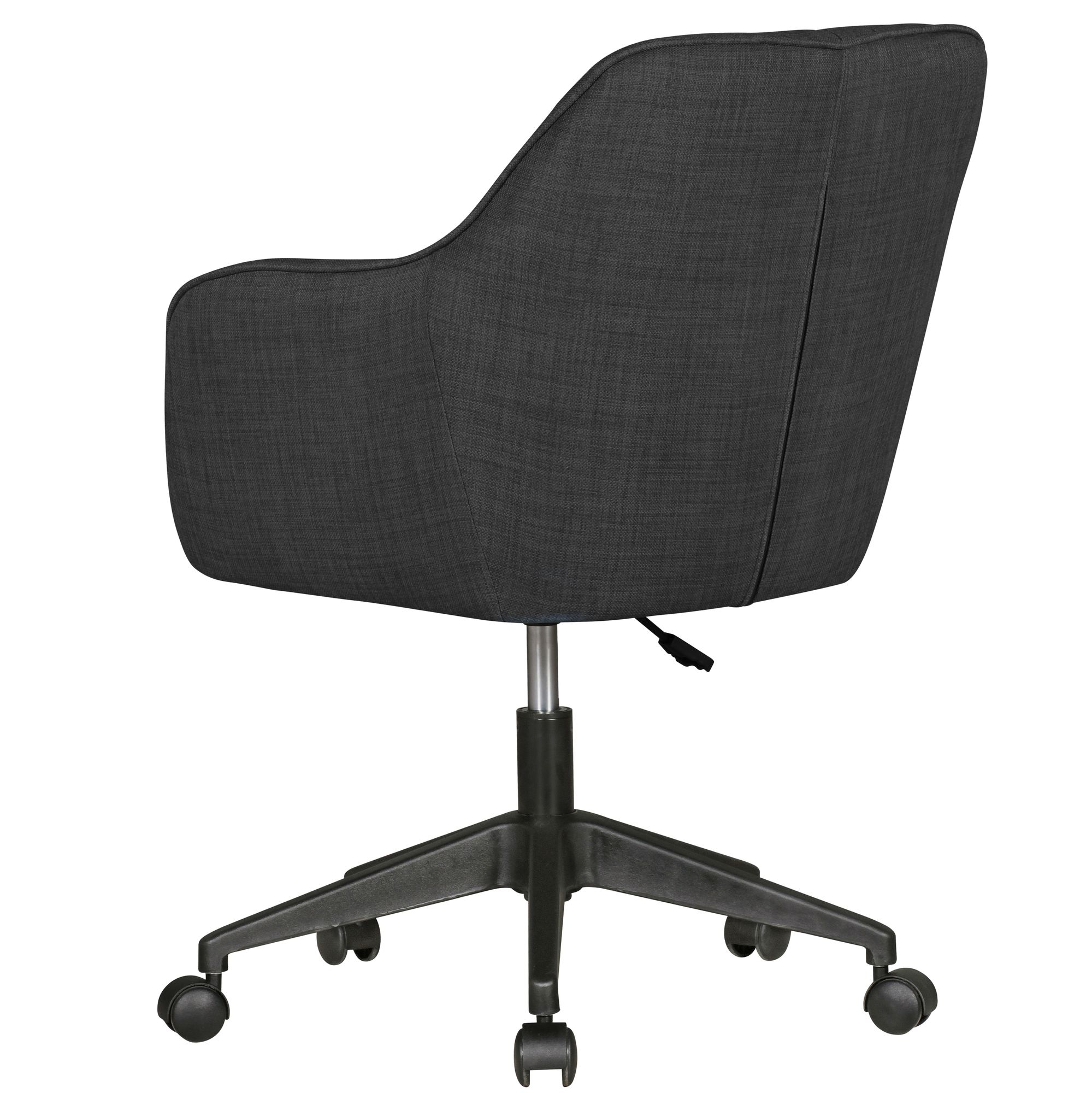 The MIAMI office chair combines retro style and maximum comfort with its anthracite fabric upholstery. Its sturdy frame and elegant armrests provide optimal support for extended work sessions, supporting up to 120 kg.