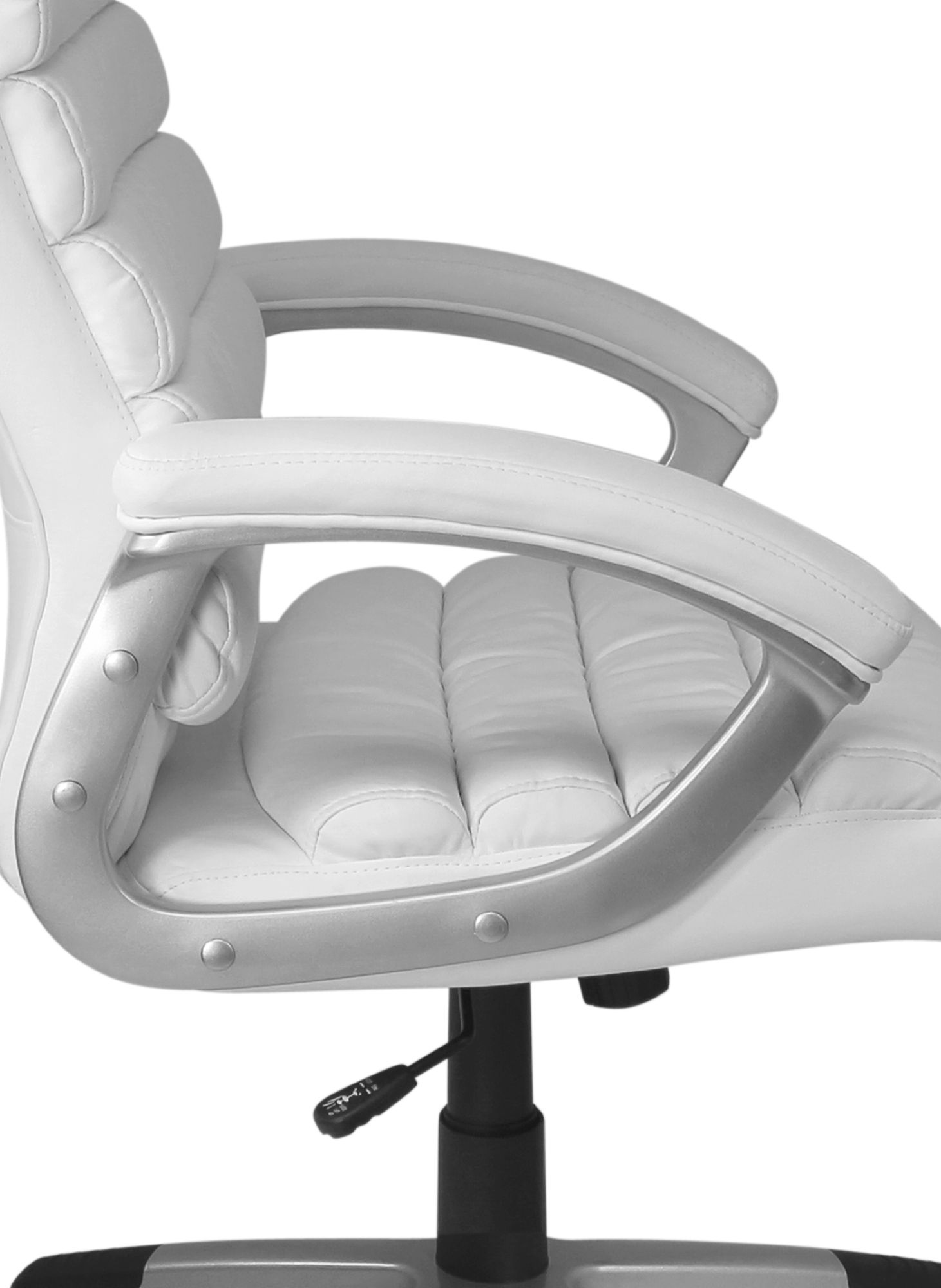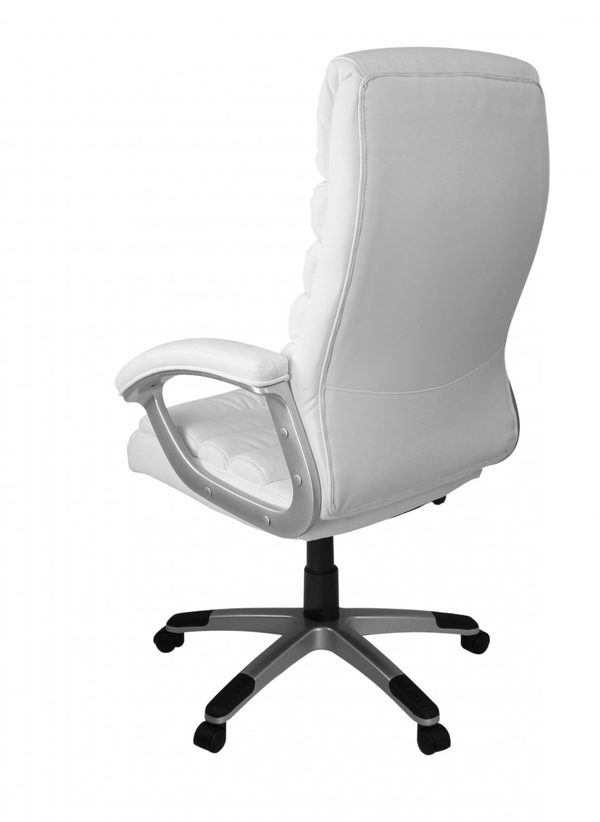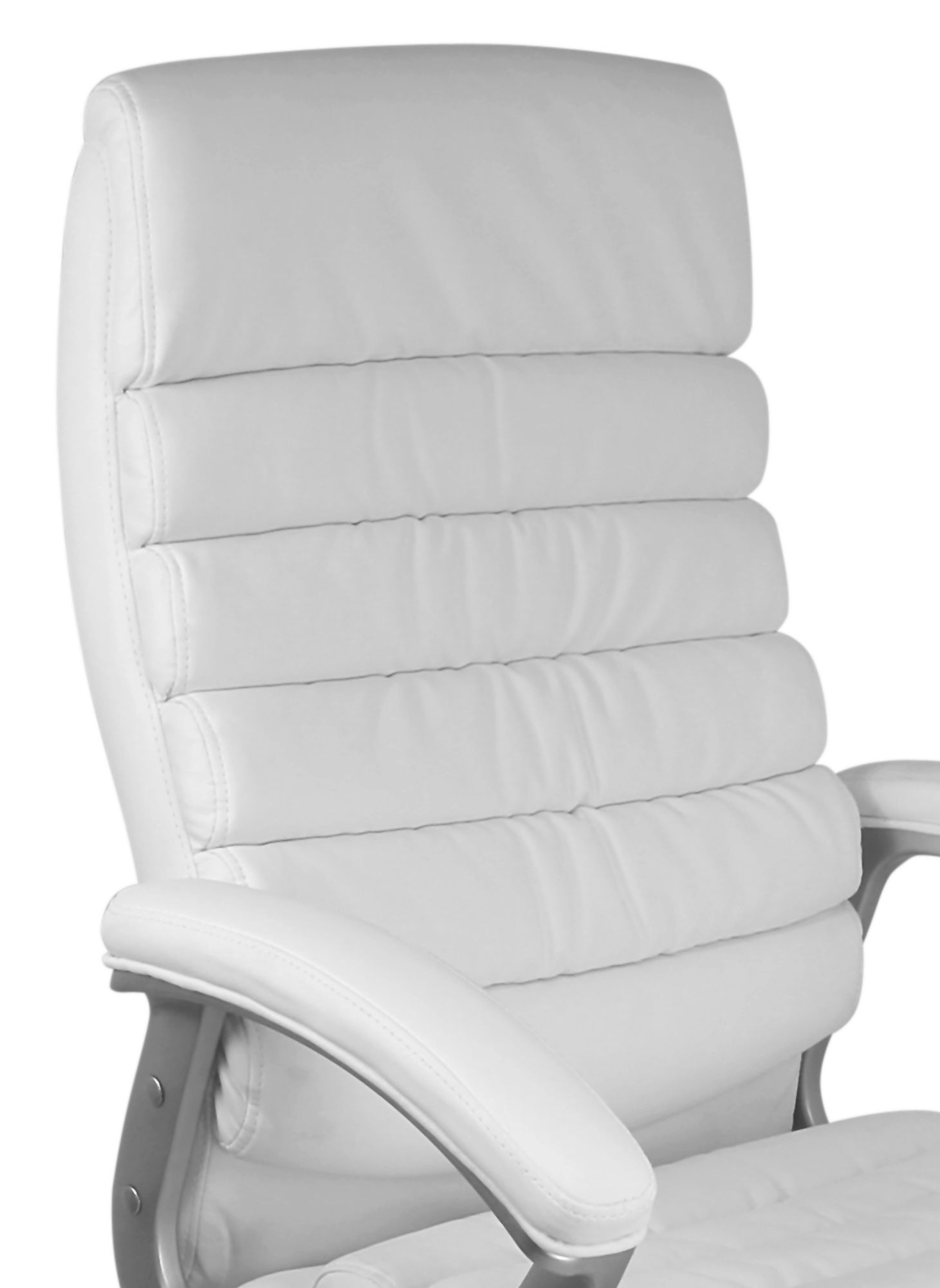 The Valencia white faux leather office chair combines comfort and elegant finishing with its high backrest and integrated headrest. Its generous padding and ergonomic structure with internal lumbar support provide comfortable seating for extended work periods.
