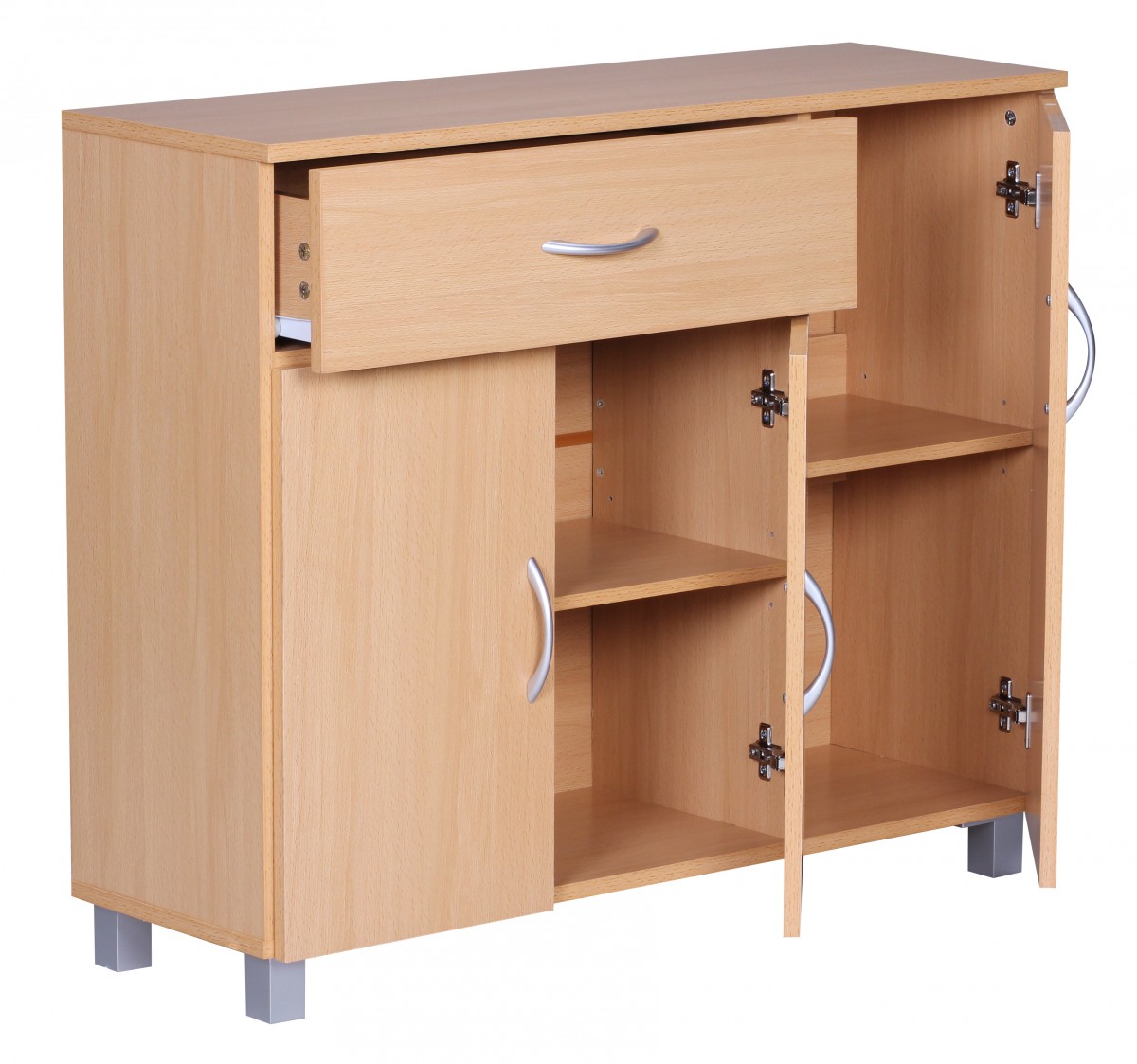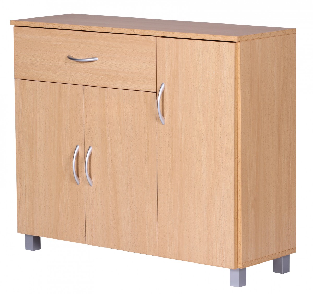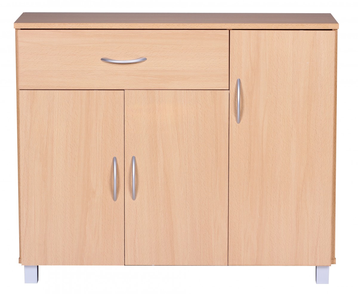 SETE Sideboard Beech Wood Matt 90 x 75 x 30 cm | 1 Drawer & 3 Doors, Grey Aluminum Handles