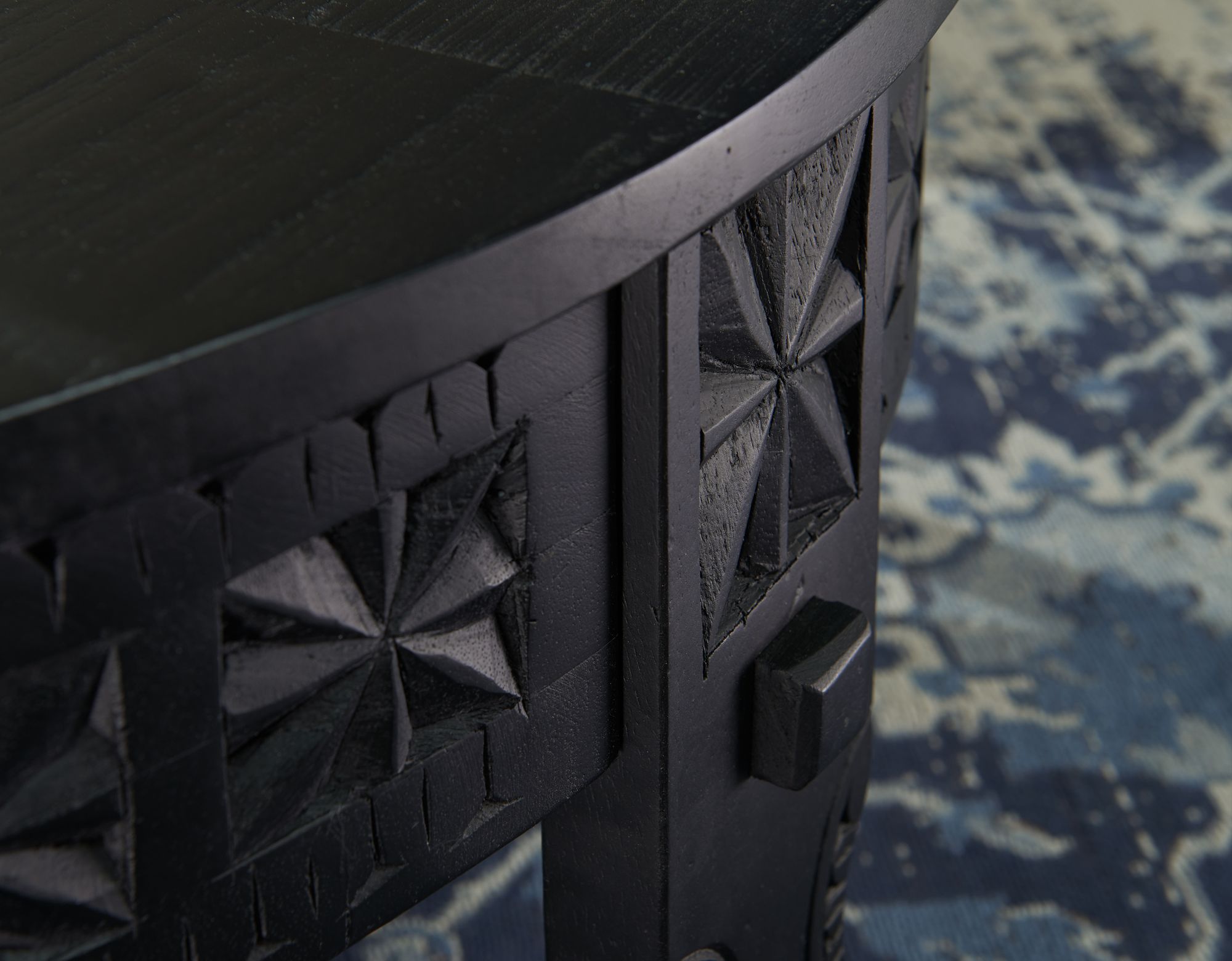 Add an oriental touch to your living room with this uniquely designed coffee table crafted from solid black mango wood. Its elegant round tabletop offers practical space for your daily items.