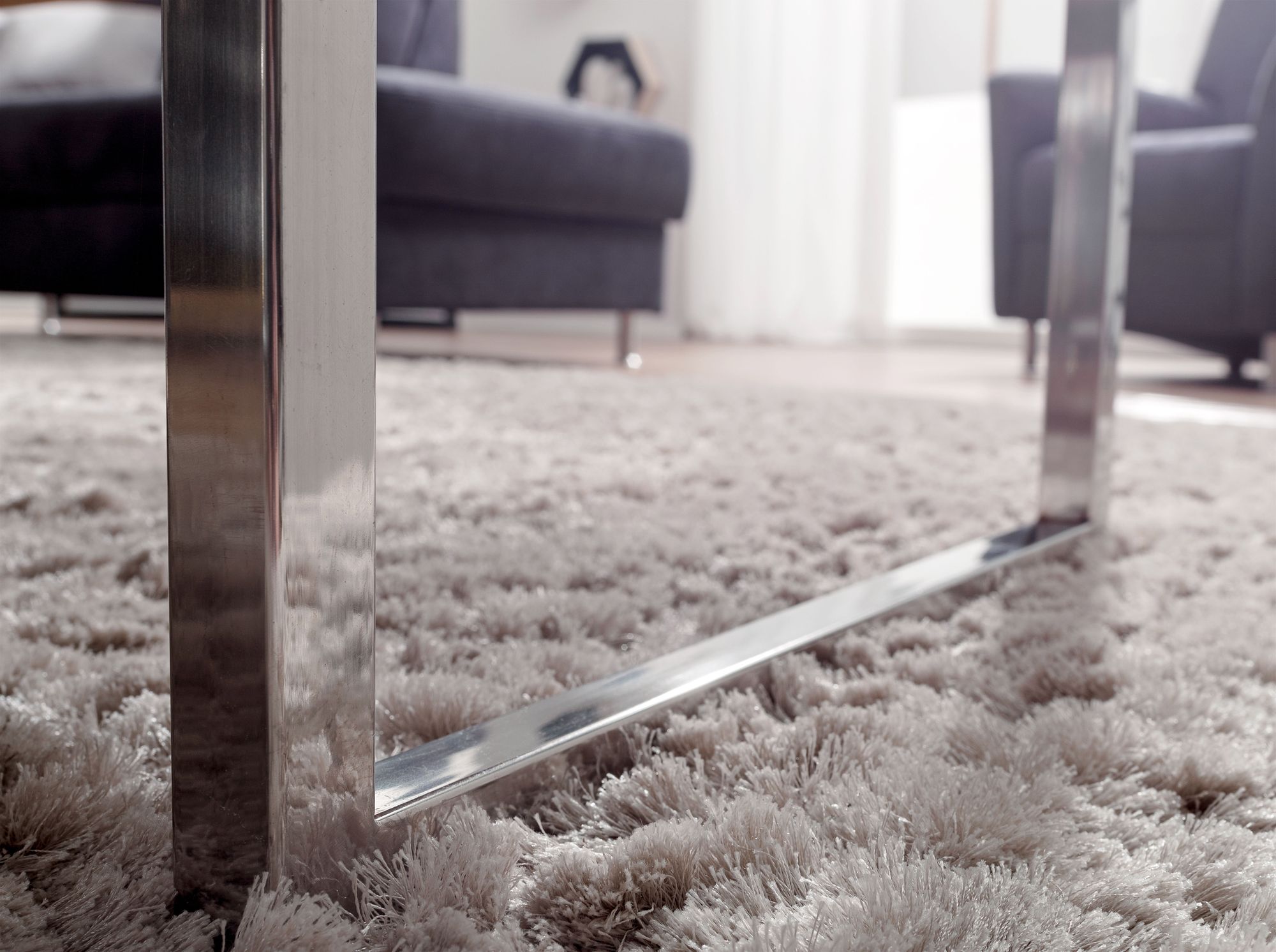 - Design: Elegant chrome legs