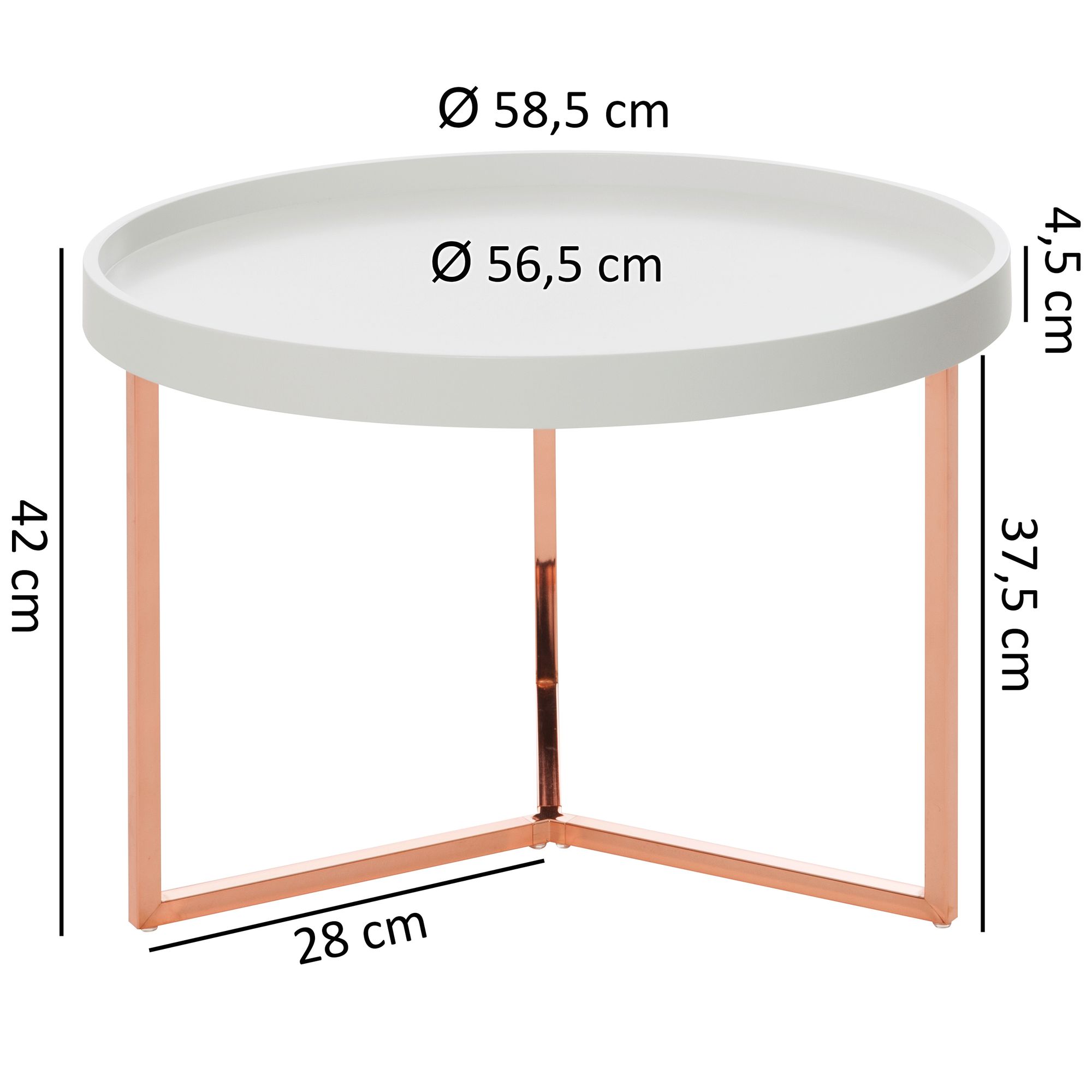 Round White & Copper Metal Coffee Table | White Wood Top | 58.5 x 42 x 58.5 cm